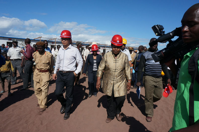在鋯鈦重砂礦采礦區(qū)現(xiàn)場,比亞斯部長參觀了非洲長城礦業(yè)目前礦區(qū)試開采階段的采砂設備和進展,與礦區(qū)所在區(qū)地方領導、村民、職工代表親切交談,認真傾聽當?shù)厣鐓^(qū)和村民在礦區(qū)內(nèi)移民搬遷方面的工作和建議;同時,部長也向當?shù)鼐用窠榻B了項目外部環(huán)境和工作進度,表示相關(guān)工作會依照政府程序有條不紊推進。