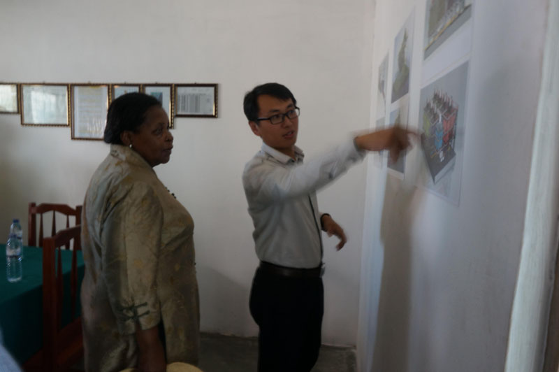 圖題:董和峰總經(jīng)理通過圖片向比亞斯部長介紹項目進展狀況